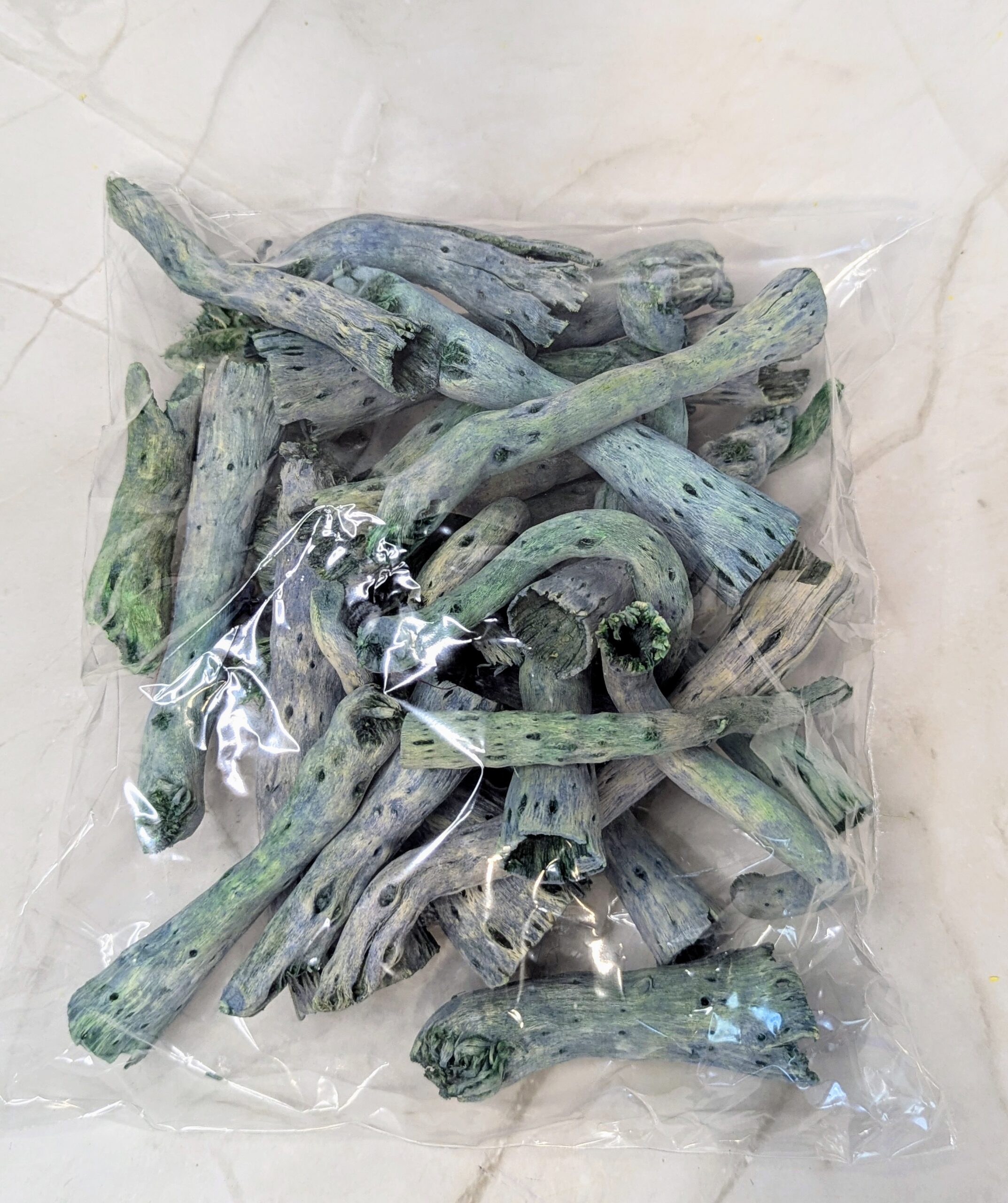 13 dkg/csomag, a képen látható mennyiség, mivel természetes anyagról van szó így előfordulhatnak méretbeli különbségek