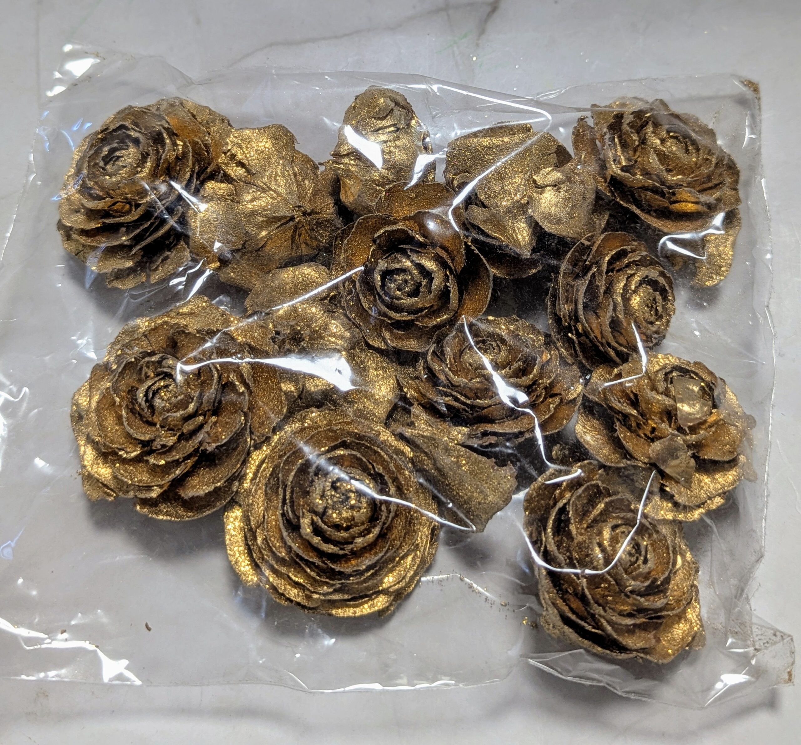 „Cédrus rózsa fej 3-5cm aranyglitter 10dkg/csom” értékelése elsőként