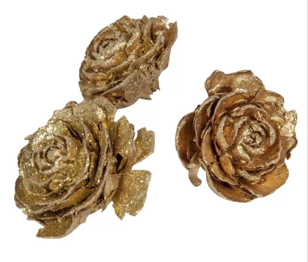 Cédrus rózsa fej 3-5cm aranyglitter 10dkg/csom
