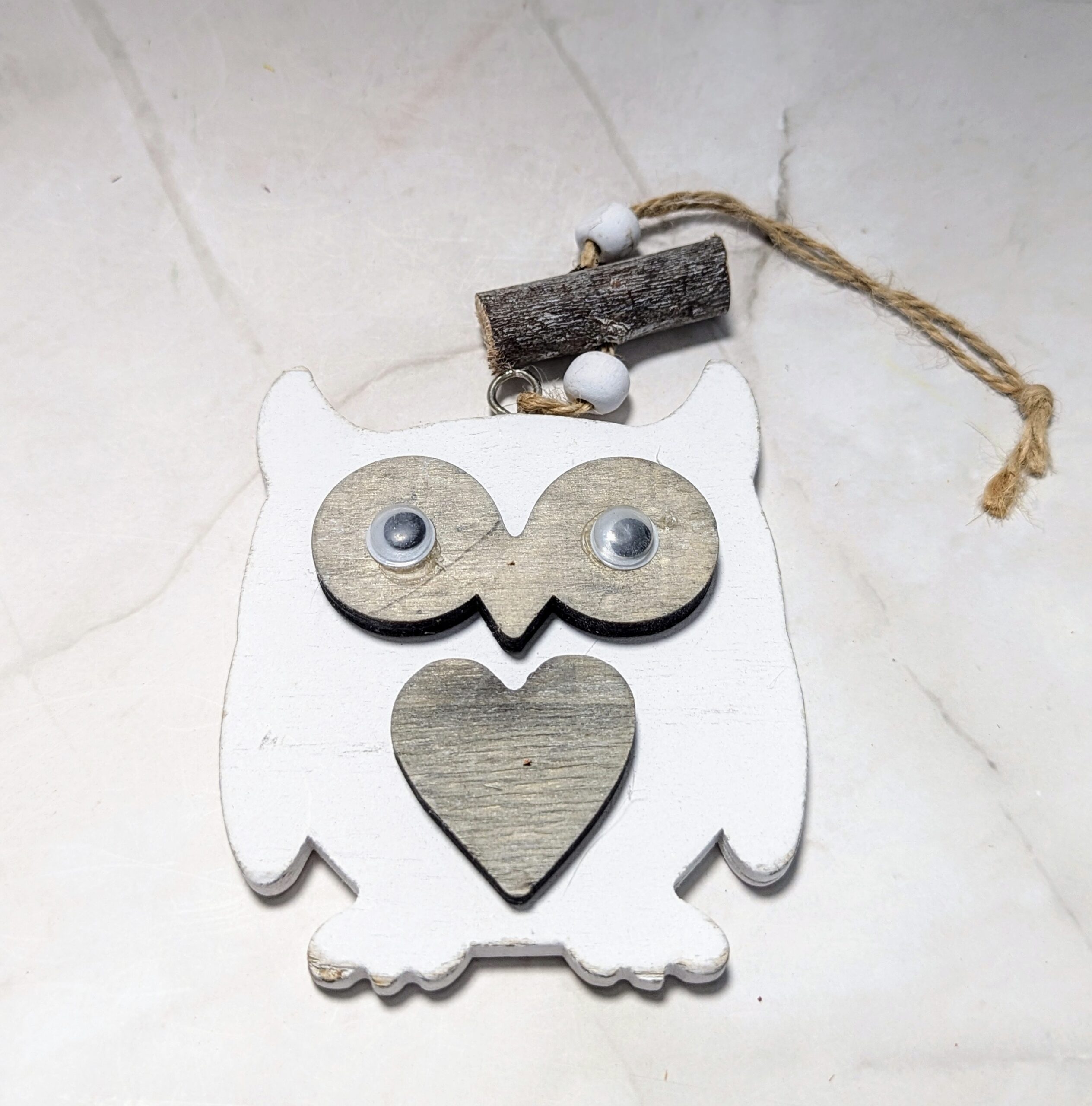 Fa bagoly szívvel – Fehér