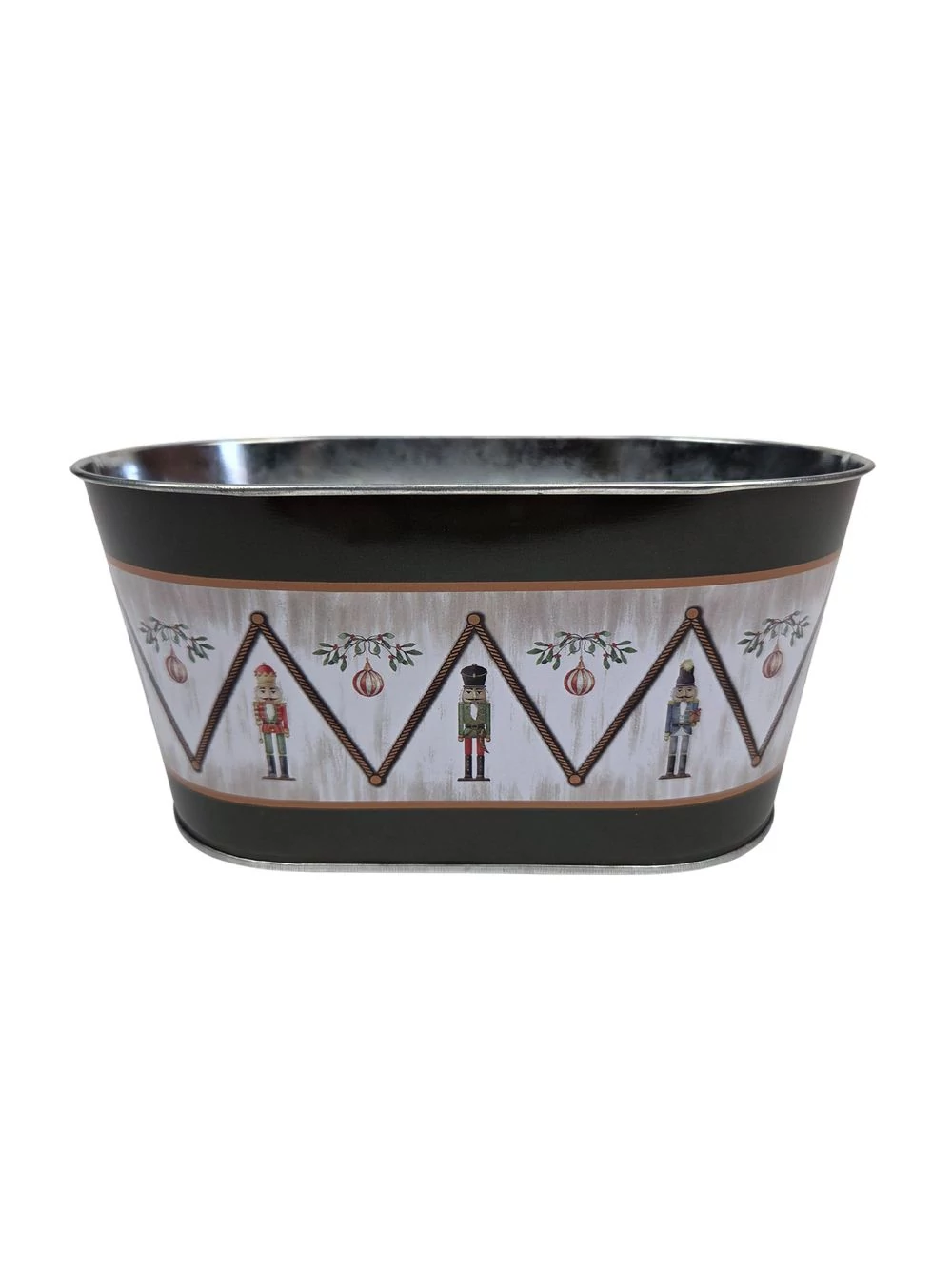 Karácsonyi mintás bádog kaspó ovál – Diótörő figura