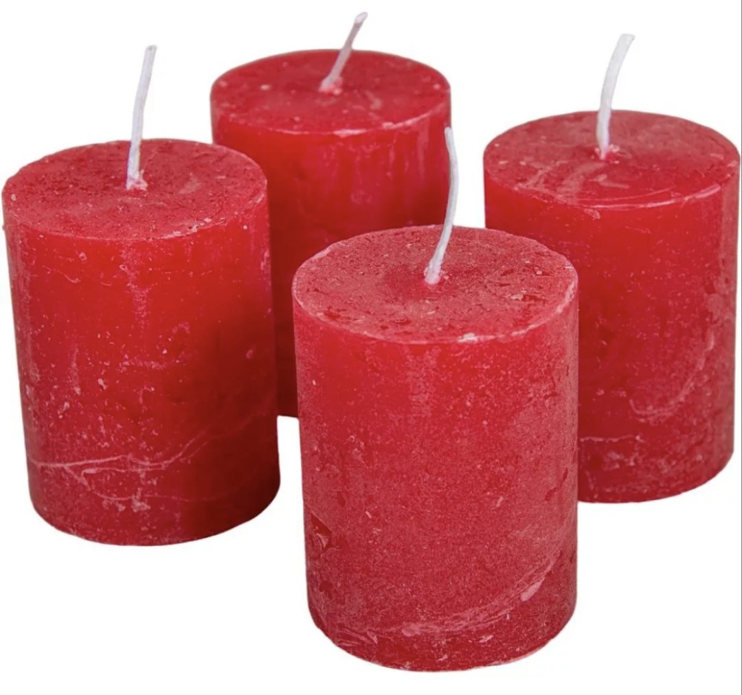 Rusztikus henger gyertya 40x50mm piros 4db/csom